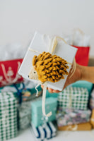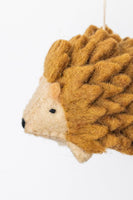 Bring the enchantment of the forest into your home with this endearing felt hedgehog ornament. Featuring a 3-dimensional hedgehog with a stitched body, tiny paws, and intricate details, this whimsical piece brings this woodland creature to life. A thoughtful keepsake for animal lovers, woodland enthusiasts, or anyone who appreciates unique, handmade ornaments.