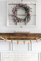 Entice the Easter bunny to visit your home with our felted Carrot Garland. Whether you're hosting a get together or a scavenger hunt, our carrot garland will add some charm to your mantels, tables or playrooms. These Faux carrots are so delightful, you will want to reach out to touch them!