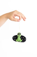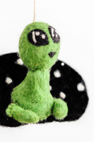 Bring a little extraterrestrial charm to your holiday décor with our handmade alien ornament. Crafted from soft felt with playful details, this friendly visitor adds a fun and imaginative twist to Christmas trees, space-themed nurseries, or sci-fi displays. Great for kids and anyone who loves outer space adventures.