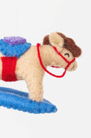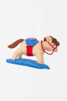 Celebrate the magic of childhood with this enchanting felt rocking horse ornament—perfect for adding a playful and nostalgic touch to your holiday season or as a thoughtful gift for a growing family. Features a beautifully stitched rocking horse with intricate details like a flowing mane, saddle, and rocking base, all designed to capture the charm of this classic toy.