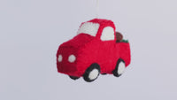 Our truck with tree ornament is 3.5 inches tall (height), 5 inches across (length), and 1 inch thick (width)