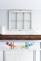 Celebrate the Festival of Lights with color and joy using our handmade rainbow Happy Diwali banner. Crafted from soft felt, this vibrant decoration adds warmth and festivity to your home, party, or puja space. Easy to hang and reusable, it’s a cheerful addition to walls, mantels, or entryways for your Diwali celebration.
