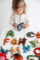 Introduce little ones to the alphabet through play with these handmade felted animal letters. Each letter of the alphabet is uniquely crafted to resemble a friendly animal, perfect for sensory learning, nursery decor, or educational playtime.