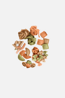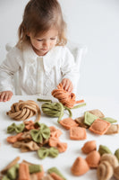 Bring a dash of culinary excitement to playtime with this handmade felt pasta set. Featuring a variety of classic shapes: ravioli, penne, farfalle, tortellini, and tagliatelle in soft, earthy tones, each piece is crafted from natural wool felt for a rich, tactile experience. Great for pretend play kitchens and sensory bins.