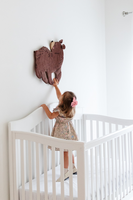 Our Bear Nursery Wall Hanging is inches 19 tall (height), 19 inches across (length), and 0.5 inch thick (width)