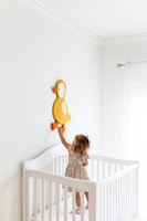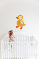 Bring a splash of sunshine to your space with this handmade yellow duck wall art. Featuring a cheerful, needle-felted wool duck, this piece adds warmth to any nursery, playroom, or farm-animal-themed room. With soft textures and gentle tones, it’s a delightful accent for little ones’ spaces.