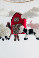 Bring the charm of the countryside to your nursery with our handmade Farm Mobile. Featuring a pig, cow, bunny, horse, and sheep, each animal is crafted from natural wool felt using traditional needle felting techniques.