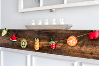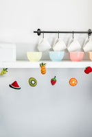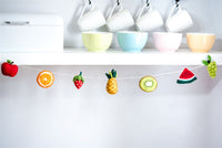 Our assortment of colorful fruits will keep you refreshed all year round. Featuring three dimensional kiwis, pineapples, watermelons, strawberries, apples, and grapes, these hand felted fruits are delicious to look at and always in season. These cheerful fruits also make great toys for your children, just cut them from the string and let the fun begin!