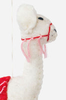 Llamas symbolize a blend of strength, community, protection, calmness, and even humor. Their presence in art and décor often evokes a sense of fun while reminding us of resilience and unity. Handcrafted entirely out of wool felt, this adorable felt llama ornament features intricate stitching, a colorful saddle, and a sweet, friendly expression that will bring joy to any room.
