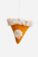 Our pumpkin pie ornament is 5 inches tall (height), 4.5 inches across (length), and 0.5 inch thick (width)